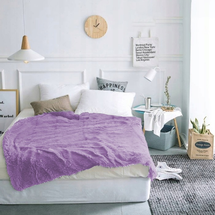 CHLAPEC VLNIAK KOŽUŠINOVÝ PLÉD PRESTIERADLO NA POSTEĽ 150 x 200 Fialový