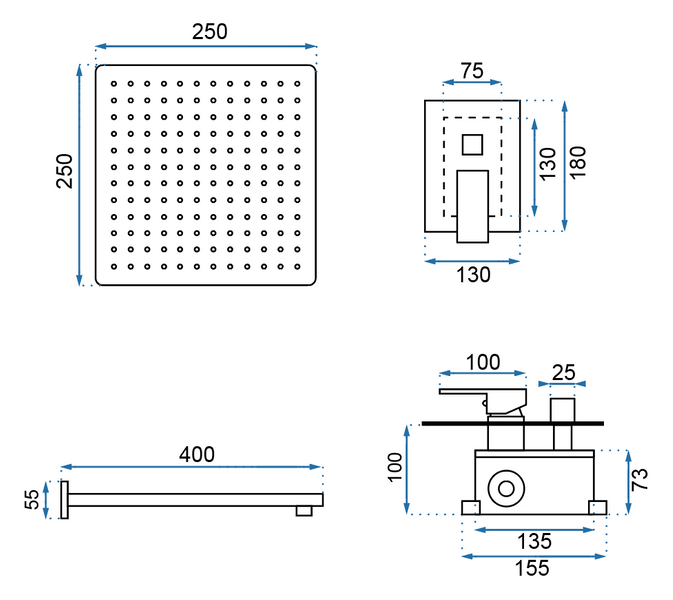Súprava podomietkovej sprchy vo verzii Premium, ktorá sa vyznačuje najvyššou kvalitou výroby. Batéria je vyrobená z mosadze a celá je pokrytá ochrannou chrómovou vrstvou. Keramická hlavica je zárukou bezporuchovej prevádzky na dlhý čas. Batéria s dažďovou sprchou je navrhnutá v modernom štýle, ktorý pripomína najnovšie svetové trendy v oblasti interiérového dizajnu. Predstavuje dokonalé spojenie krásneho štýlového tvaru s vysokou kvalitou spracovania a jednoduchosťou používania.