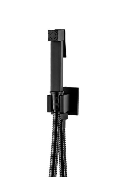 Čierna hygienická súprava s bidetkou, súčasťou súpravy sú vonkajšie aj vnútorné komponenty. Hygienická súprava je vyrobená z mosadze.
