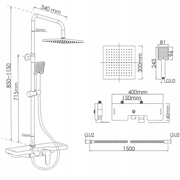 SPRCHOVÁ SÚPRAVA NÁSTENNÁ Y-3001 ČIERNA