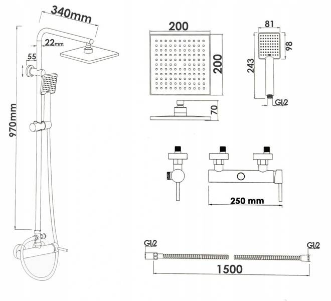 SPRCHOVÁ SÚPRAVA NÁSTENNÁ Y-3005B ČIERNA