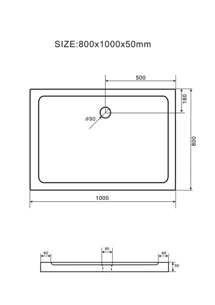 OBDĹŽNIKOVÝ SPRCHOVÝ KÚT SLIM 100x80 BIELY