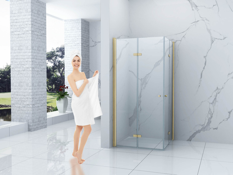 SPRCHOVÝ KÚT BAXLER ŠTVORCOVÝ TRANSPARENTNÝ - 90X90X190 ZLATÝ