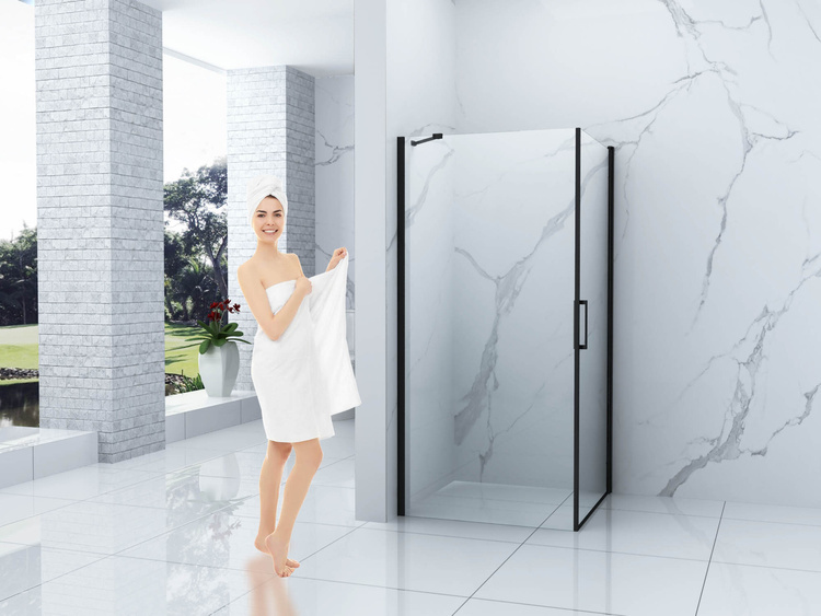 SPRCHOVÝ KÚT FRANKLIN ČIERNY S VANIČKOU ŠTVORCOVÝ TRANSPARENTNÝ - 80X80X190