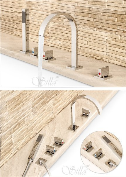 5-otvorová vaňová batéria s montážou na vaňu značky Silla, zvýrazní dizajn minimalistickej, modernej a industriálnej kúpeľne. Táto batéria vytvorí dokonalý duet s vašou vaňou.