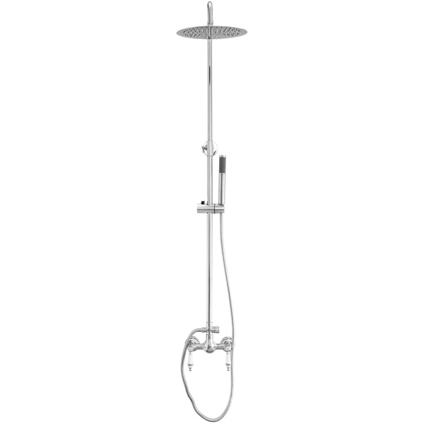 Nástenná sprchová súprava PALOMA je klasická forma a elegantné prevedenie v lesklom chróme, ktoré dokonale ladia s interiérmi v retro, vintage alebo glamour štýle. Dekoratívne úchyty s porcelánovými akcentmi a jemné označenia teploty vytvárajú jedinečnú atmosféru.