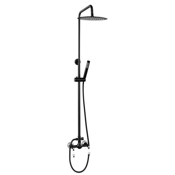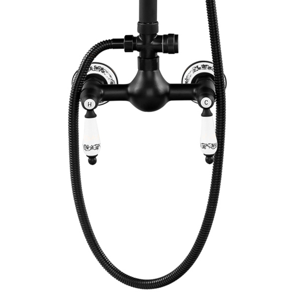 Sprchová súprava PALOMA je ideálnou voľbou pre milovníkov klasických foriem v modernom prevedení. Čierny matný povrch je doplnený štýlovými bielymi úchytkami s dekoratívnym vzorom, čo celej súprave dodáva výnimočný retro charakter. Súprava sa skladá z veľkej dažďovej sprchy, štíhlej ručnej sprchy a batérie s dvoma vintage ovládačmi.