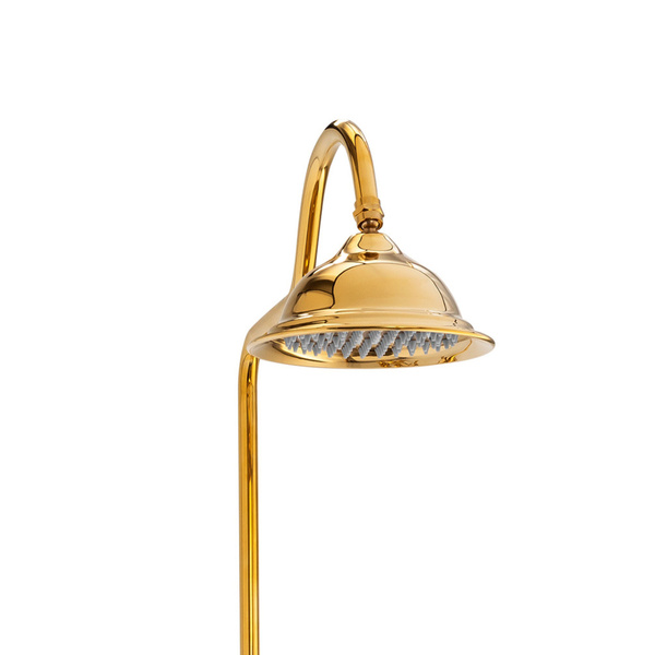 Nástenná sprchová súprava MATILDA je určená pre tých, ktorí chcú dodať kúpeľni výnimočný, klasický charakter. Elegantná dažďová sprcha v retro štýle, porcelánová ručná sprcha a rafinované zlaté prevedenie vytvárajú atmosféru luxusu a útulnosti zároveň.
