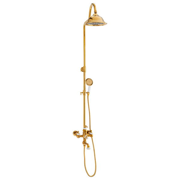 Nástenná sprchová súprava zlatá s dažďovou sprchou a ručnou sprchou – klasický retro dizajn v luxusnom prevedení