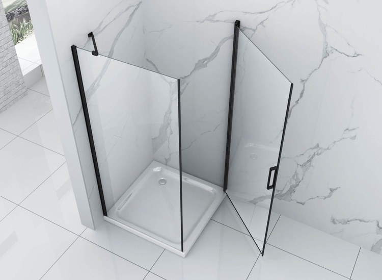 SPRCHOVÝ KÚT FRANKLIN ČIERNY S NÍZKOU VANIČKOU ŠTVORCOVÝ TRANSPARENTNÝ - 90X90X190