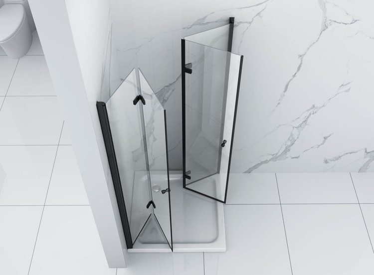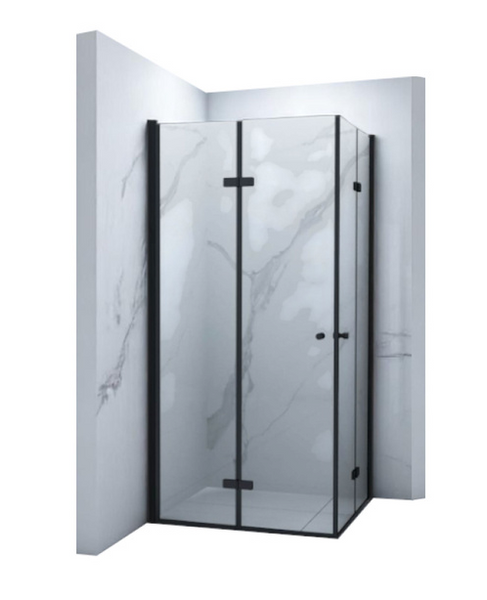 SPRCHOVÝ KÚT BAXLER ČIERNY S NÍZKOU VANIČKOU ŠTVORCOVÝ TRANSPARENTNÝ - 80X80X190