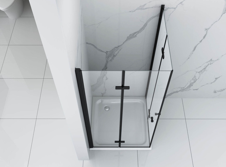 SPRCHOVÝ KÚT BAXLER ČIERNY S NÍZKOU VANIČKOU ŠTVORCOVÝ TRANSPARENTNÝ - 90X90X190