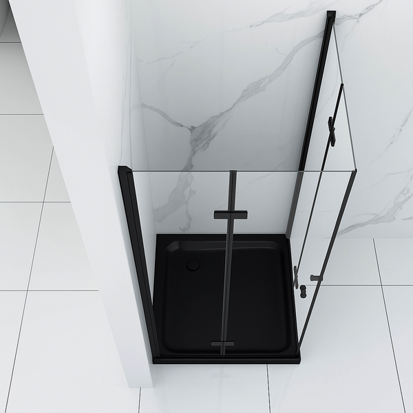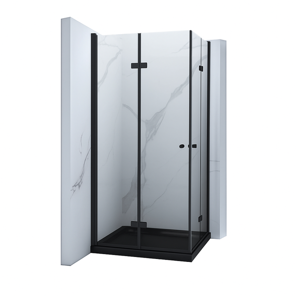 SPRCHOVÝ KÚT BAXLER ČIERNY S ČIERNYM SLIM SPRCHOVÝM TÁCKOM ŠTVORCOVÝ TRANSPARENTNÝ - 80X80X190