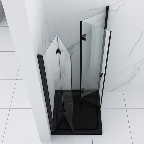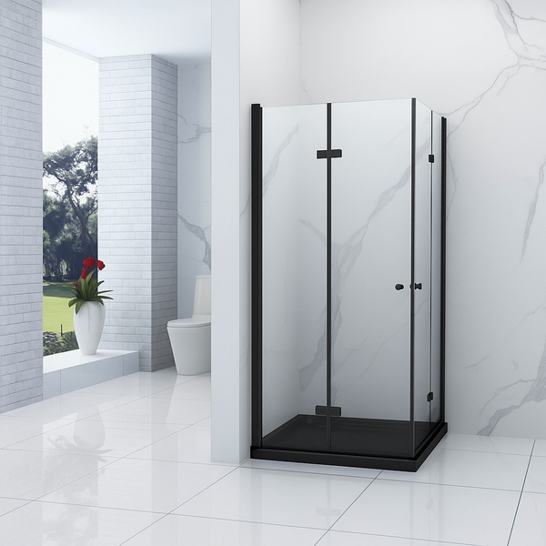 SPRCHOVÝ KÚT BAXLER ČIERNY S NÍZKOU ČIERNOU VANIČKOU ŠTVORCOVÝ TRANSPARENTNÝ - 90X90X190