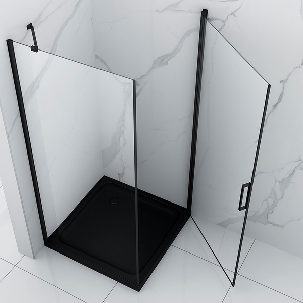 SPRCHOVÝ KÚT FRANKLIN ČIERNY S ČIERNYM NÍZKYM SPRCHOVÝM BRODZÍKOM ŠTVORCOVÝ TRANSPARENTNÝ - 90X90X190