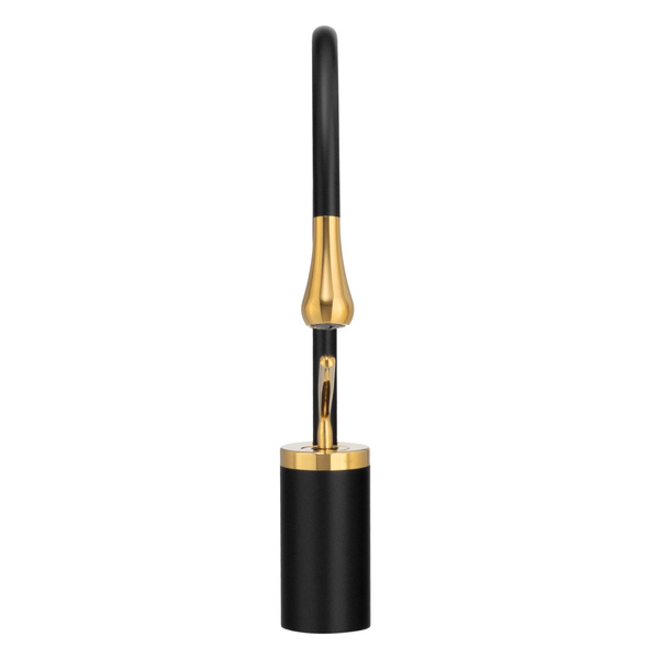 Umývadlová batéria LUCA je výnimočné spojenie minimalistického dizajnu s luxusnou povrchovou úpravou v čierno-zlatej farbe. Štíhly, valcovitý základ a vysoký, zahnutý výtok s jemne rozšíreným zakončením dodávajú batérii subtílnu ľahkosť a zároveň tvoria výrazný dekoratívny prvok každej kúpeľne.