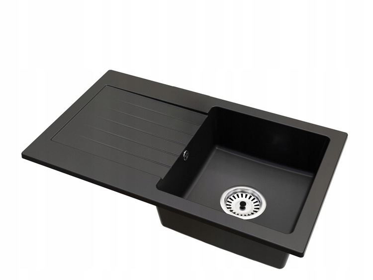 Granitový drez Leon v odtieni elegantnej čiernej je ideálnou voľbou do moderných, industriálnych alebo klasických interiérov. Tmavá farba sa perfektne kombinuje s dreveným, bielym alebo farebným nábytkom a dodáva kuchyni štýl a charakter. Kuchynský drez Leon zaujme funkčnosťou – má širokú odkvapovú plochu na pravej strane a praktickú poličku so štyrmi bodmi na montážne otvory (vŕtané na želanie zákazníka).