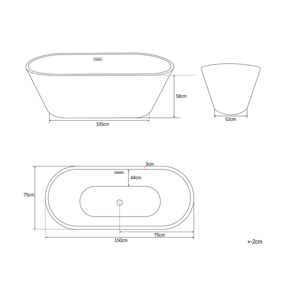 Voľne stojaca vaňa EMILY 150×75×58 cm predstavuje spojenie elegancie, komfortu a trvácnych materiálov. Jej kompaktný rozmer a nadčasový dizajn z nej robia štýlový prvok každej kúpeľne.